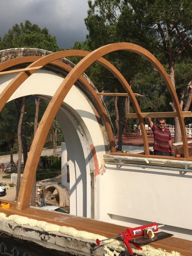 Otelin komple tüm ahşap işleri ve dekleri yapılmıştır.
